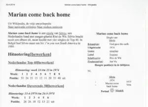 Intussen steeg Marian Come Back Home naar de 11e plaats in de Top 40 en moest over een opvolger worden nagedacht.