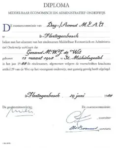 Ik slaagde voor mijn M.B.A. , startte met SPD (StaatsPraktijkDiploma Bedrijfsadministratie) en werkte als administrateur bij Huijbregts Notarissen.